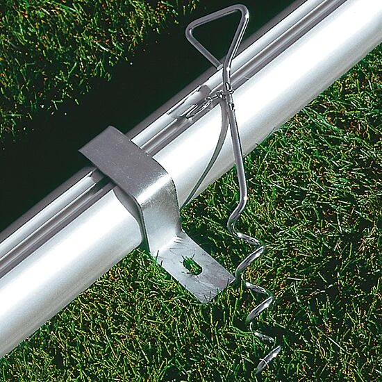 - 2 spiralförmige Erdanker mit Haltebügel für Bodenrahmenprofil