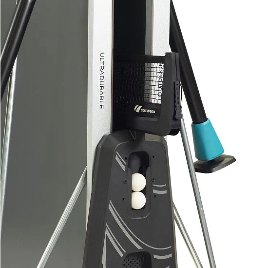 Die robuste Konstruktion und Stabilität der Cornilleau Tischtennisplatte „300X“ sind nur 2 der zahlreichen Vorteile. Zudem punktet der TT-Tisch mit einem hervorragenden Rebound. Die verstellbaren Beine bieten obendrein Flexibilität und sicheren Stand auf unebenen Oberflächen. Die Zentralverriegelung, 2 Doppellenkrollen mit Feststeller für den einfachen Transport und sicheren Stand und 2 Punktezählgeräte runden das Konzept ab und sorgen für bestmögliche Sicherheit.