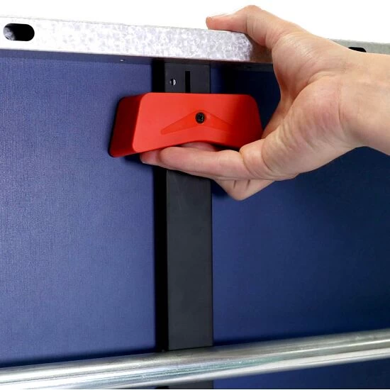 Die Cornilleau Tischtennisplatte „500 Indoor 2023“ verfügt über das patentierte DSI-Verriegelungssystem. Sie können den Freizeittisch für den Schul- und Vereinssport dadurch auch auf unebenen Böden sicher aufstellen und dank der integrierten Bein-Nivellierung Höhenunterschiede ausgleichen. Die Mattop-beschichtete Oberfläche reflektiert 10-mal weniger als herkömmliche Tischtennistische. Zum Transport verfügt die Platte über 4 Indoor-Doppelrollen, 2 davon mit Feststellbremsen.