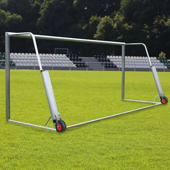 Die fahrbare Kippsicherung „Netzbügel“ ist neben dem Einsatz auf dem Rasen auch für Kunstrasen- und Hartplätze bestens geeignet. Die Kippsicherung ist mit Quarzsand zu befüllen. Bitte geben Sie bei der Bestellung den Durchmesser von Ihrem Netzbügel an (max. 5 cm möglich). Die Gewichte werden mit Klemmen an den Netzbügeln verschraubt. Auf den großen Transportrollen können Sie das Tor angekippt transportieren. Mit 2 Gewichten entsprechen die Tore der DINDIN-Norm: Ein vom Deutschen Institut für Normung erarbeiteter freiwilliger Standard, in dem materielle und immaterielle Gegenstände vereinheitlicht sind.-EN 748 (GS-Geprüft).