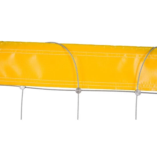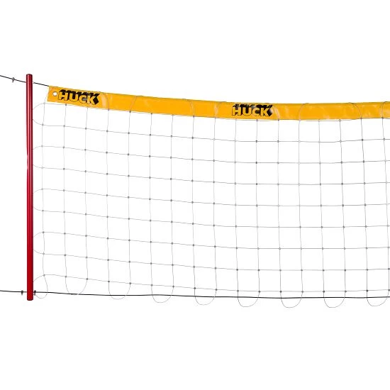 Das Huck Beachvolleyballnetz ist aus verzinkten Stahldrahtseilen (Dralo) gefertigt und ca. 2 mm stark. Das obere Einfassband besteht aus beschichtetem Gewebe. Die Netzgröße nach internationaler Vorschrift gefertigt. Sollten Spieler hin und wieder in das Netz greifen, sind ummantelte Netze wesentlich weicher und angenehmer.