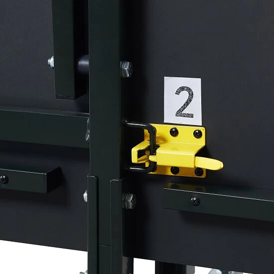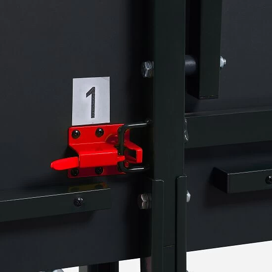 Die Tischtennisplatte „Inside J18“ von Joola wird zusammen mit einem pulverbeschichtetem TT-Netz aus BaumwolleBaumwolle ist eine hautfreundliche Naturfaser. Vorteile: strapazierfähig und leicht zu pflegen. geliefert, welches sich mittels einer Klemmtechnik leicht anbringen lässt. Die 2 separaten Tischplatten lassen sich einzeln hochklappen, wodurch auch ein Training allein möglich ist. Die doppelte Kippsicherung verschafft den Spielern zusätzliche Sicherheit während der Partien. Die Oberfläche aus MDF