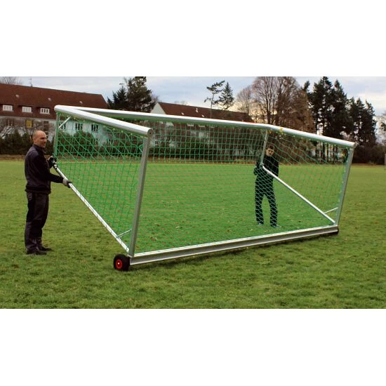 Mit diesen hochwertigen Zusatzgewichten aus deutscher Produktion sichern Sie Ihre Jugendfußballtore schnell, einfach und zuverlässig gegen Umkippen. Eine Torsicherung besteht aus einem AluminiumAluminium ist ein korrosionsbeständiges und pflegeleichtes Leichtmetall, welches für den vielfältigen Einsatz im Innen- und Außenbereich geeignet ist. Aufgrund der hohen Elastizität und des nur geringen Gewichts, ist es eines der am häufigsten verwendeten Gebrauchsmaterialien.-Spezialprofil sowie stabilen Transporträdern. Das Gewichtsprofil wird fest mit dem Bodenrahmen des Tores verschraubt und anschließend zur Erreichung des erforderlichen Kontergewichts mit trockenem Quarzsand gefüllt. Das so gesicherte Tor entspricht den Vorschriften zur Sicherung von mobilen Toren des GUV und der DINDIN-Norm: Ein vom Deutschen Institut für Normung erarbeiteter freiwilliger Standard, in dem materielle und immaterielle Gegenstände vereinheitlicht sind. EN 748 und lässt Sie auf der sicheren Seite stehen! Durch Zurückkippen des Tores mit 2 Personen verlagern Sie das Gewicht auf die Räder und positionieren es problemlos neu auf dem Trainingsplatz.