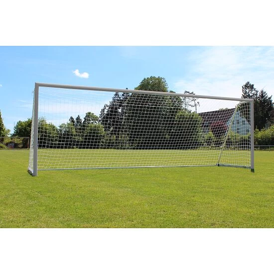 Das Sport-Thieme Großfeld-Fußballtor mit klappbarem Netzbügel und Bodenrahmen ist das perfekte Trainingstor im Ligabetrieb und kommt hier für das Aufwärmtraining zum Einsatz. Das Stadiontor ist 7,32×2,44 m groß und entspricht den aktuellen FIFA- und DFB-Vorschriften. Der Torrahmen ist aus AluminiumAluminium ist ein korrosionsbeständiges und pflegeleichtes Leichtmetall, welches für den vielfältigen Einsatz im Innen- und Außenbereich geeignet ist. Aufgrund der hohen Elastizität und des nur geringen Gewichts, ist es eines der am häufigsten verwendeten Gebrauchsmaterialien.-Ovalprofil und der Bodenrahmen aus Rechteckprofil gefertigt. Dank der vielfachen Innenprofilierung ist das Großfeld-Fußballtor besonders verwindungssteif und es wird eine optimale Stabilität und Haltbarkeit erreicht. Das Besondere an dem Tor: Es ist komplett klappbar, ohne Werkzeug!