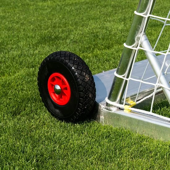 Die Besonderheit des Safety Fußballtors liegt in seiner unschlagbaren Kombination aus Stabilität, Standfestigkeit und Mobilität. Das wirklich innovative Element dieses Fußballtors besteht in seinem Bodenrahmen – Dort wo bei anderen mobilen Trainingstoren ein herkömmliches Bodenrohr sitzt, ist beim Fußballtor Safety ein befüllbares Gewichtsrohr angeschweißt. Um das Safety Tor zu sichern, ist das Rohr mit Quarzsand zu füllen. Einmal gefüllt ist Ihr Tor sicher und bleibt dennoch mobil. Sie brauchen keine zusätzlichen Torverankerungen mehr, die für jede Trainingseinheit und jedes Umsetzen des Tores an- und wieder abgebaut werden müssen.