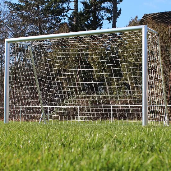 Das Sport-Thieme Kleinfeld-Fußballtor „Das grüne Tor“ ist aus 80 % recyceltem AluminiumAluminium ist ein korrosionsbeständiges und pflegeleichtes Leichtmetall, welches für den vielfältigen Einsatz im Innen- und Außenbereich geeignet ist. Aufgrund der hohen Elastizität und des nur geringen Gewichts, ist es eines der am häufigsten verwendeten Gebrauchsmaterialien. gefertigt. Die Tornetze sind biologisch abbaubar und werden mit der Simply-Fix-Netzbefestigung einfach und schnell an das Tor angebracht. Das frei stehende und mobile Tor ist durch das geringe Gewicht, die Transportgriffe und die Transportrollen leicht positionierbar. Mit der Antikipp-Bodenverankerung, bestehend aus Spiralerdanker, steht das sicherheitsgeprüfte Kleinfeldtor geschützt und es ist verletzungsneutral. Das vollverschweißte, 1-teilige Tor ist zudem mehrfach innenverstärkt und somit ideal für den dauerhaften Einsatz auf dem Fußballplatz geeignet.