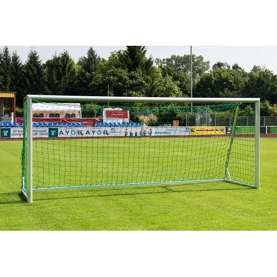 Das Sport-Thieme Kleinfeldtor ist 3×2 m groß und entspricht den aktuellen FIFA- und DFB-Vorschriften. Der Torrahmen ist aus AluminiumAluminium ist ein korrosionsbeständiges und pflegeleichtes Leichtmetall, welches für den vielfältigen Einsatz im Innen- und Außenbereich geeignet ist. Aufgrund der hohen Elastizität und des nur geringen Gewichts, ist es eines der am häufigsten verwendeten Gebrauchsmaterialien. Ovalprofil und dank seiner vielfachen Innenprofilierung mit Nut besonders verwindungssteif. Das Netz (nicht im Lieferumfang) lässt sich dank der gefrästen SimplyFix-Netzbefestigung einfach am Sport-Thieme Kleinfeldtor anbringen. Hierfür wird die Netzrandschnur vollständig in der Profilnut versenkt.