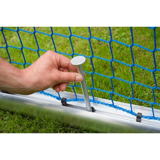 | Torverarbeitung | TeilverschweißtTorlatte und Bodenrahmenstange sind mit den verschweißten Torseitenteilen (Pfosten und Netzbügel) verschraubt. Dadurch entstehen geringere Versandkosten im Vergleich zu vollverschweißten Toren. |