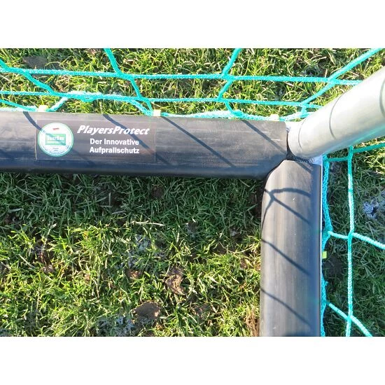 PlayersProtect ist ein Aufprallschutz in Verbindung mit einem speziell konstruierten flachen Alu-Bodenrahmen. Bei einem Aufprall findet durch die inneren Kammern und der besonderen Form ein deutlicher Kraftabbau statt. PlayersProtect bildet mit dem Alu-Bodenrahmen eine homogene Einheit. Das Gummiprofil minimiert das Verletzungsrisiko beim Aufprall des Spielers auf den Bodenrahmen erheblich, zudem ist es UV- und witterungsbeständig.