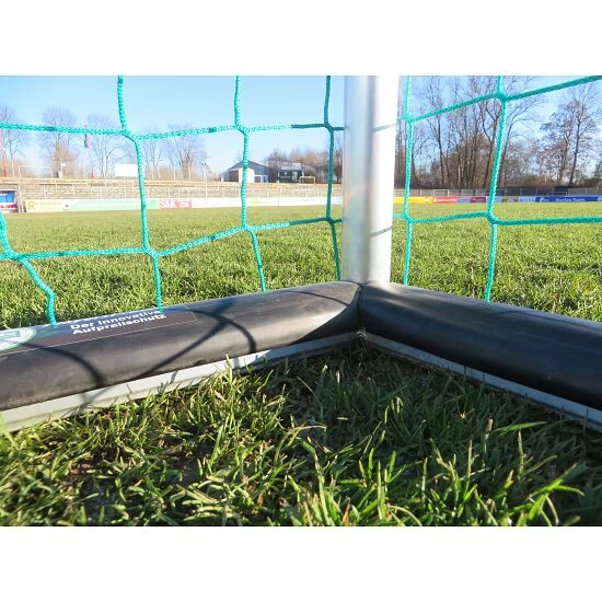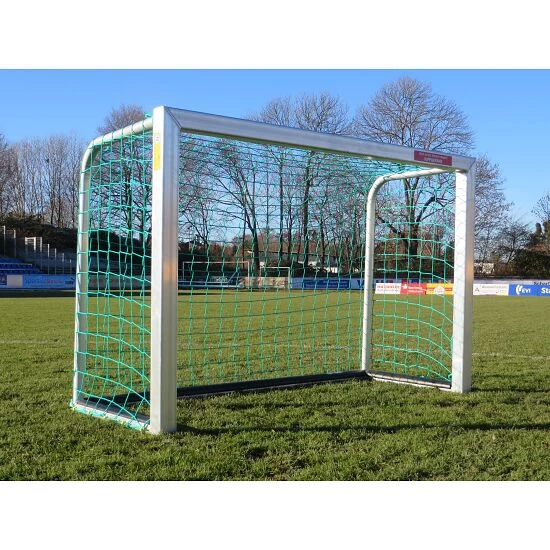Das Mini-Tor, vollverschweißt mit PlayersProtect ist, dank vollverschweißtem AluminiumAluminium ist ein korrosionsbeständiges und pflegeleichtes Leichtmetall, welches für den vielfältigen Einsatz im Innen- und Außenbereich geeignet ist. Aufgrund der hohen Elastizität und des nur geringen Gewichts, ist es eines der am häufigsten verwendeten Gebrauchsmaterialien.-Rahmen, ein besonders robustes Mini-Trainingstor. Es ist GS-geprüft und in den Größen 120×80 cm, 180×120 cm und 240×160 cm erhältlich. Das Tor wird inklusive Netz (Grün) und Netzhaltern geliefert, welche UV-beständig sind. Der Aufprallschutz (PlayersProtect) besteht aus einem Gummiprofil und ist UV- und witterungsbeständig.