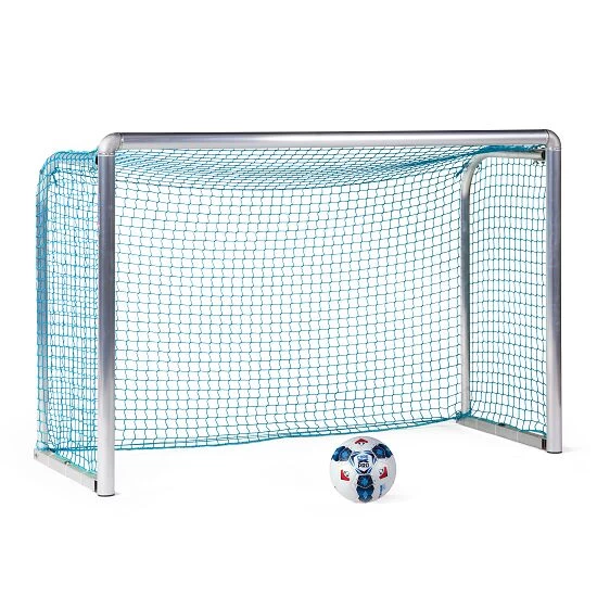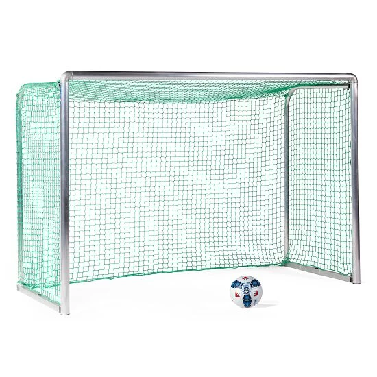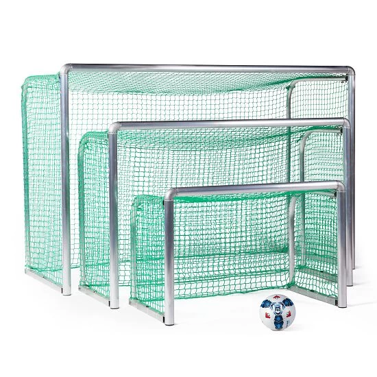 Neben der hohen Sicherheit durch abgerundete Ecken zeichnet sich das Mini-Trainingstor vor allem durch sein robustes Material und miteinander verschweißte 90-Grad-Rundbögen aus. So garantieren die stabilen Alu-Rohre jahrlange, zuverlässige Dienste auch bei täglichem Einsatz. Damit Ballspiele auch bei schlechtem Wetter nicht ausfallen müssen, ist dieses Mini-Trainingstor mit Bodenschonern ausgestattet und kann problemlos drinnen genutzt werden. Ein weiterer Bonuspunkt ist die einfache Handhabung: Die Netzbügel sind mit arretierbaren Spezialscharnieren am Rahmen befestigt – ein Bodenrohr ist nicht notwendig. Nach dem Spielen lassen sich die Bügel auch mit befestigtem Netz leicht einklappen und das Tor kann platzsparend verstaut werden. Die Bodenholme sind aus System-Profilen 40×40 mm inkl. Nut gefertigt. Die Befestigung des Netzes erfolgt mittels H+ Netzhaltern an den Holmen.