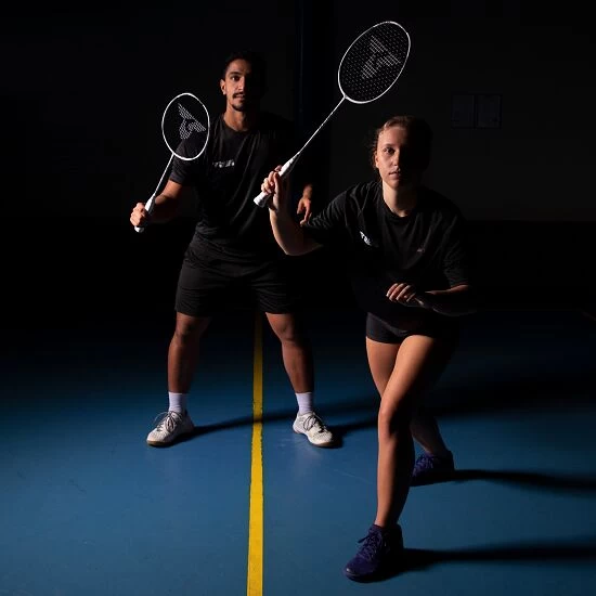 - Graphitgriff: Anstatt des Standardholzgriffes wird hier ein hohler Graphitgriff angesetzt. Dadurch wird das Schlägergewicht um ca. 5 g reduziert. Da die Gewichtsersparnis im Griff erfolgt, verlagert sich der Balancepunkt zum Kopf hin. Das Ergebnis sind extrem leichte Schläger, die durch die Verschiebung des Balancepunkts trotzdem viel Druck beim Schlag haben.
