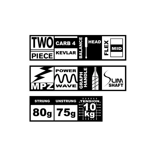- Two-Piece Racket: Schaft und Rahmen werden in zwei getrennten High-Tech Produktionsprozess hergestellt. Dies gewährleistet eine genaue Kontrolle aller Parameter.