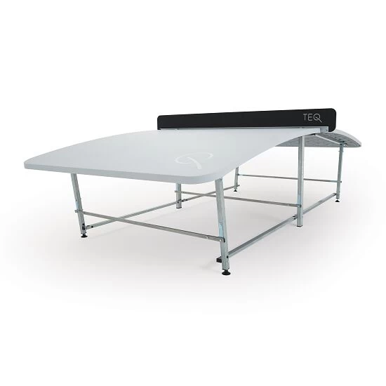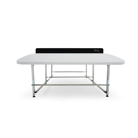 Der Teqball Spieltisch „Teq X“ ist aus einer Stahlkonstruktion gefertigt. Die Beinelemente sind zudem antikorrosionsbeschichtet. Damit ist der Teqballtisch für den Innen- und Außenbereich einsetzbar. Bei dem „Teq X“ handelt es sich um die fest stehende Version des Teqball Spieltisches „Teq Lite“. Er besitzt keine Räder, ist dafür aber am Untergrund fixierbar und bietet so sicheren Halt und damit faire Spielbedingungen. Sie können den Tisch einfach mit Warmwasser oder bei starken Verschmutzungen mit einem Haushaltsreiniger ohne Scheuermittel schnell und einfach reinigen.